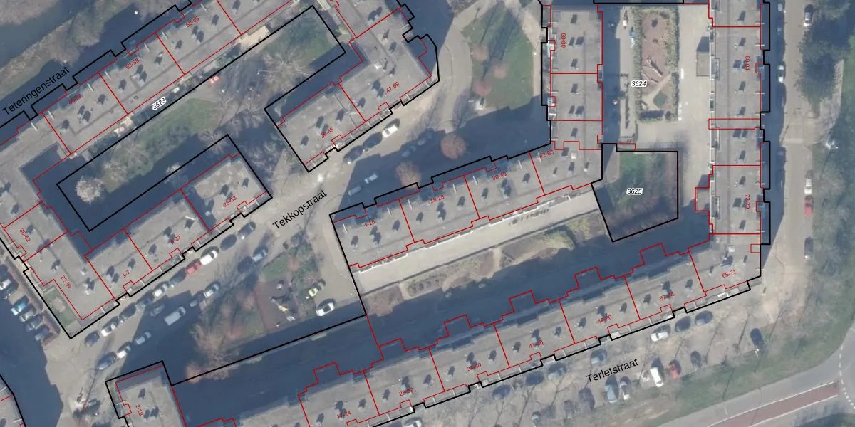 Het perceel waarop Tekkopstraat 22 staat heeft een oppervlakte van 9940 m². Dit is een zeer groot perceel. De perceeloppervlakte wordt geregistreerd door het Kadaster. Gedetailleerde informatie over de maten van dit perceel kunt u vinden in het rapport Kadastrale kaart met maatvoering van Tekkopstraat 22.