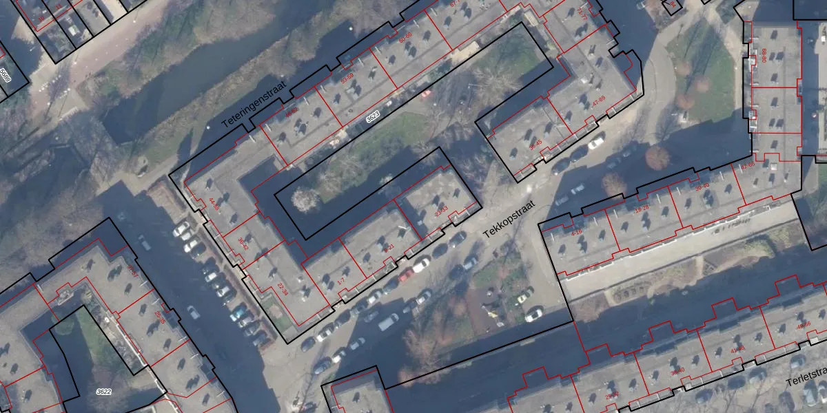 Tekkopstraat 27 is gelegen op kadastraal perceel WPK02L3623. Deze kadastrale aanduiding is uniek en wordt gebruikt door het Kadaster om eigendomsrechten en andere zakelijke rechten vast te leggen. Het perceel maakt onderdeel uit van de kadastrale gemeente Weesperkarspel.