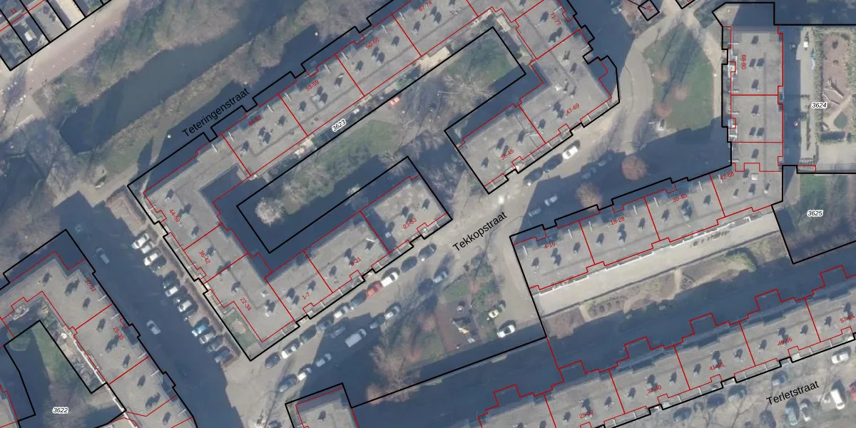 Het perceel waarop Tekkopstraat 29 staat heeft een oppervlakte van 4080 m². Dit is een zeer groot perceel. De perceeloppervlakte wordt geregistreerd door het Kadaster. Gedetailleerde informatie over de maten van dit perceel kunt u vinden in het rapport Kadastrale kaart met maatvoering van Tekkopstraat 29.