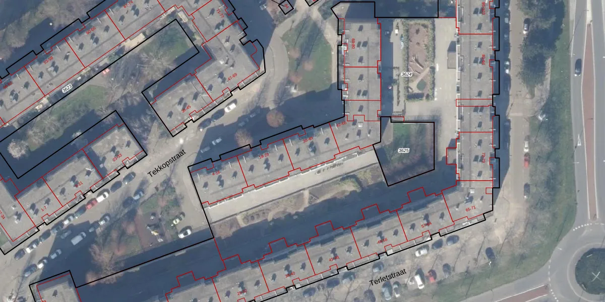 Het perceel waarop Tekkopstraat 34 staat heeft een oppervlakte van 9940 m². Dit is een zeer groot perceel. De perceeloppervlakte wordt geregistreerd door het Kadaster. Gedetailleerde informatie over de maten van dit perceel kunt u vinden in het rapport Kadastrale kaart met maatvoering van Tekkopstraat 34.