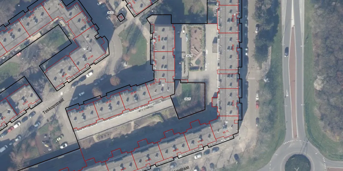 Het perceel waarop Tekkopstraat 50 staat heeft een oppervlakte van 9940 m². Dit is een zeer groot perceel. De perceeloppervlakte wordt geregistreerd door het Kadaster. Gedetailleerde informatie over de maten van dit perceel kunt u vinden in het rapport Kadastrale kaart met maatvoering van Tekkopstraat 50.