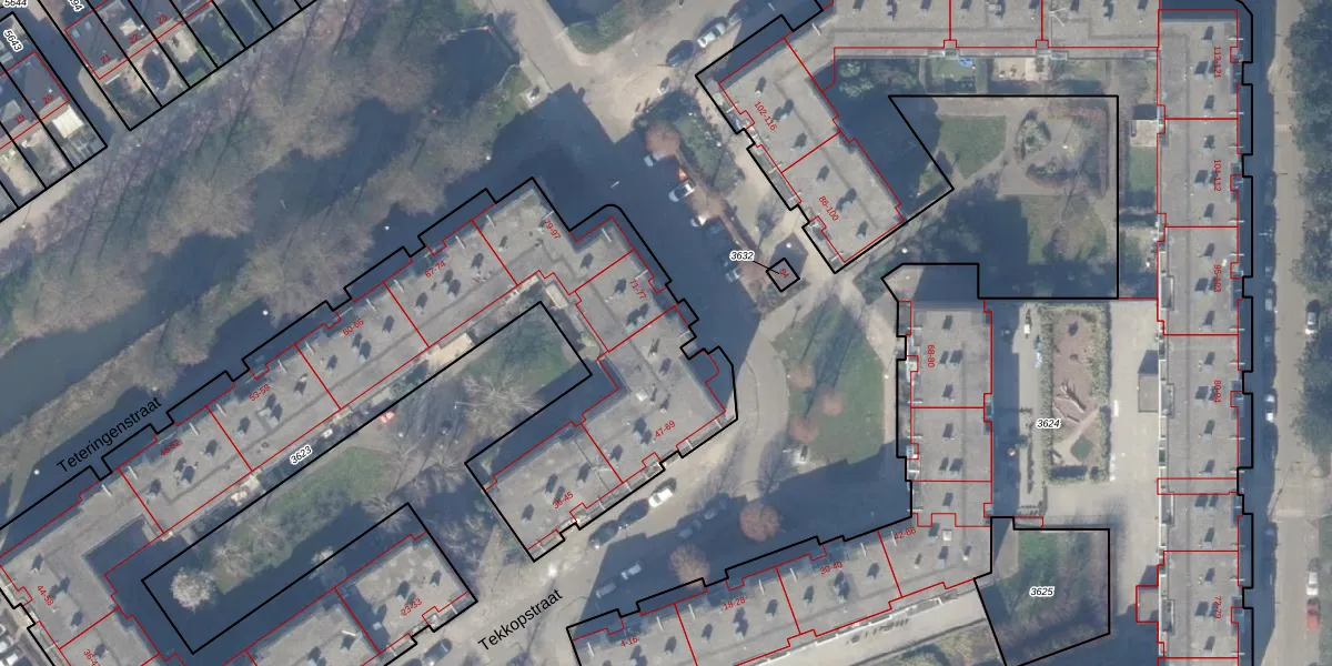 Het perceel waarop Tekkopstraat 61 staat heeft een oppervlakte van 4080 m². Dit is een zeer groot perceel. De perceeloppervlakte wordt geregistreerd door het Kadaster. Gedetailleerde informatie over de maten van dit perceel kunt u vinden in het rapport Kadastrale kaart met maatvoering van Tekkopstraat 61.