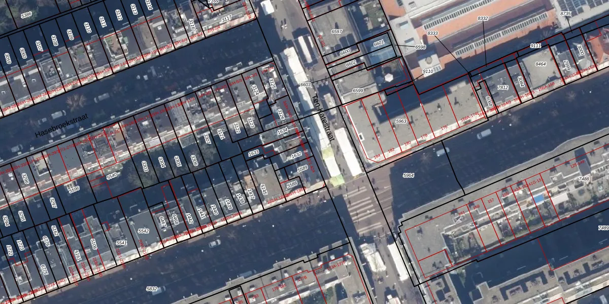 Het perceel waarop Ten Katestraat 40-H staat heeft een oppervlakte van 69 m². Dit is een klein perceel. De perceeloppervlakte wordt geregistreerd door het Kadaster. Gedetailleerde informatie over de maten van dit perceel kunt u vinden in het rapport Kadastrale kaart met maatvoering van Ten Katestraat 40-H.