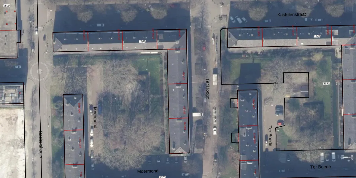 Ter Hooge 13-2 is gelegen op kadastraal perceel ASD30AK1342. Deze kadastrale aanduiding is uniek en wordt gebruikt door het Kadaster om eigendomsrechten en andere zakelijke rechten vast te leggen. Het perceel maakt onderdeel uit van de kadastrale gemeente Amsterdam.
