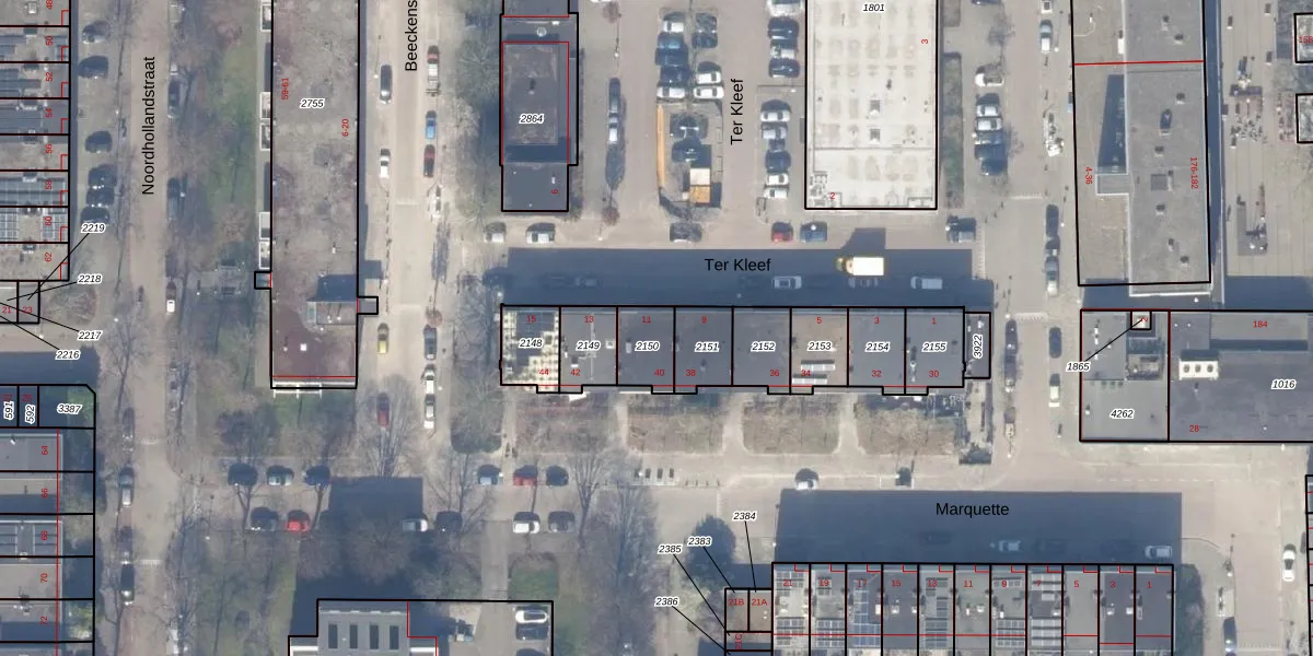 Ter Kleef 11 is gelegen op kadastraal perceel ASD30AK2150. Deze kadastrale aanduiding is uniek en wordt gebruikt door het Kadaster om eigendomsrechten en andere zakelijke rechten vast te leggen. Het perceel maakt onderdeel uit van de kadastrale gemeente Amsterdam.