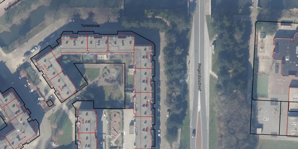 Het perceel waarop Terletstraat 108 staat heeft een oppervlakte van 9940 m². Dit is een zeer groot perceel. De perceeloppervlakte wordt geregistreerd door het Kadaster. Gedetailleerde informatie over de maten van dit perceel kunt u vinden in het rapport Kadastrale kaart met maatvoering van Terletstraat 108.