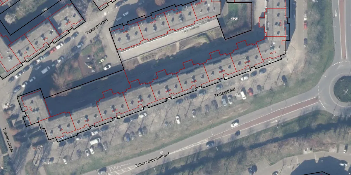 Het perceel waarop Terletstraat 38 staat heeft een oppervlakte van 9940 m². Dit is een zeer groot perceel. De perceeloppervlakte wordt geregistreerd door het Kadaster. Gedetailleerde informatie over de maten van dit perceel kunt u vinden in het rapport Kadastrale kaart met maatvoering van Terletstraat 38.