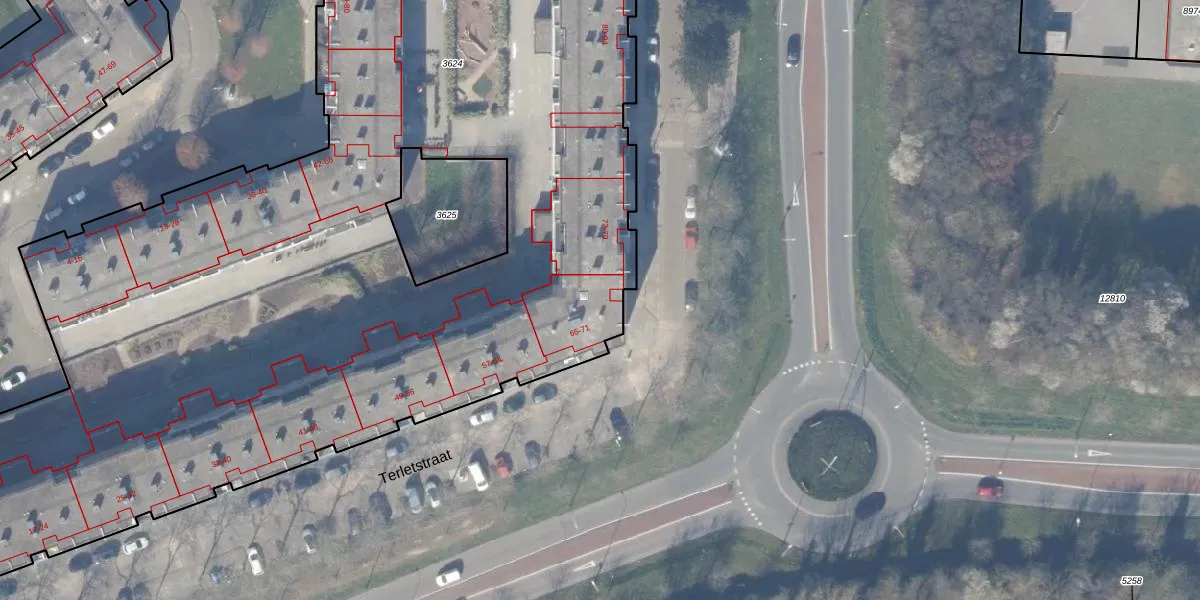 Het perceel waarop Terletstraat 69 staat heeft een oppervlakte van 9940 m². Dit is een zeer groot perceel. De perceeloppervlakte wordt geregistreerd door het Kadaster. Gedetailleerde informatie over de maten van dit perceel kunt u vinden in het rapport Kadastrale kaart met maatvoering van Terletstraat 69.