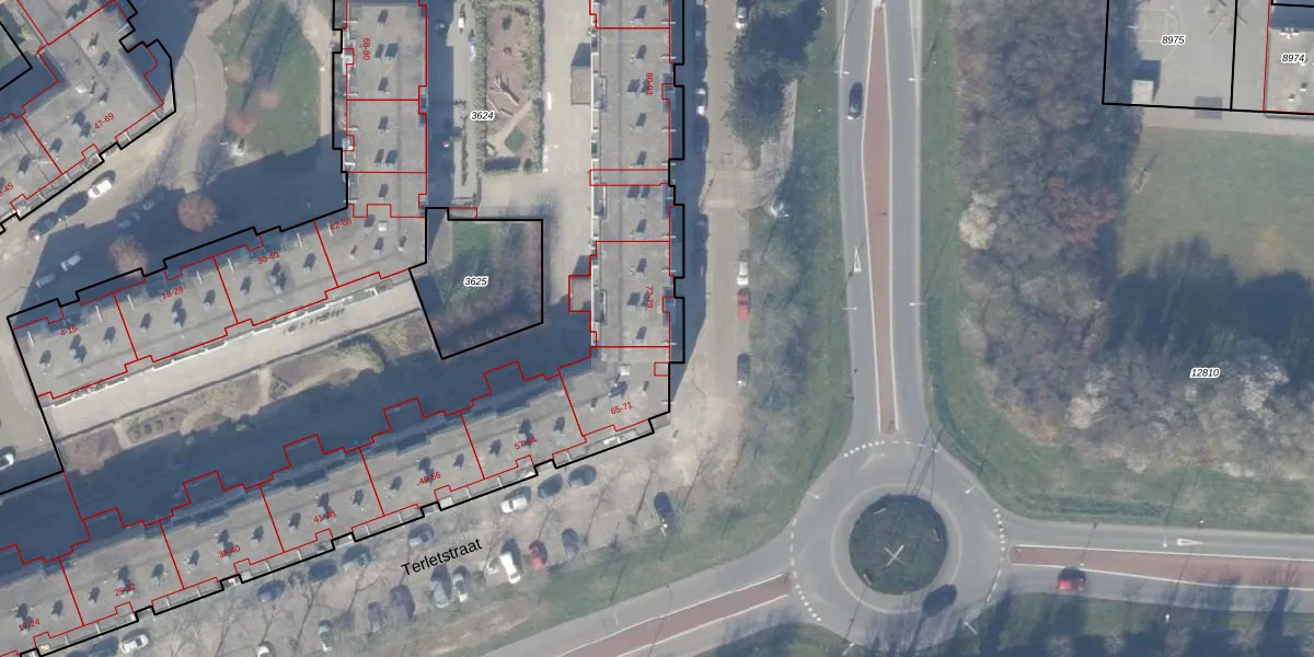 Het perceel waarop Terletstraat 72 staat heeft een oppervlakte van 9940 m². Dit is een zeer groot perceel. De perceeloppervlakte wordt geregistreerd door het Kadaster. Gedetailleerde informatie over de maten van dit perceel kunt u vinden in het rapport Kadastrale kaart met maatvoering van Terletstraat 72.