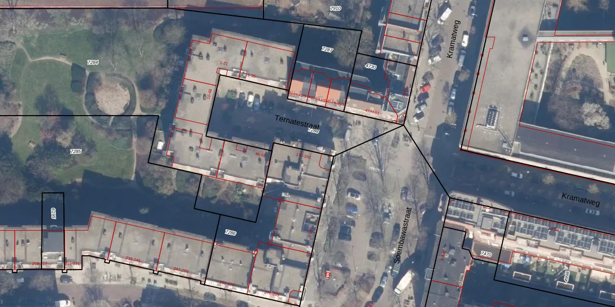 Ternatestraat 184 is gelegen op kadastraal perceel ASD19W7286. Deze kadastrale aanduiding is uniek en wordt gebruikt door het Kadaster om eigendomsrechten en andere zakelijke rechten vast te leggen. Het perceel maakt onderdeel uit van de kadastrale gemeente Amsterdam.