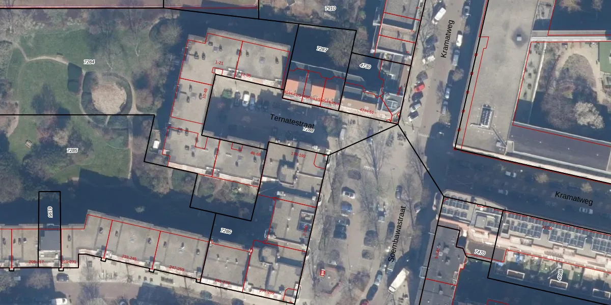 Ternatestraat 188 is gelegen op kadastraal perceel ASD19W7286. Deze kadastrale aanduiding is uniek en wordt gebruikt door het Kadaster om eigendomsrechten en andere zakelijke rechten vast te leggen. Het perceel maakt onderdeel uit van de kadastrale gemeente Amsterdam.