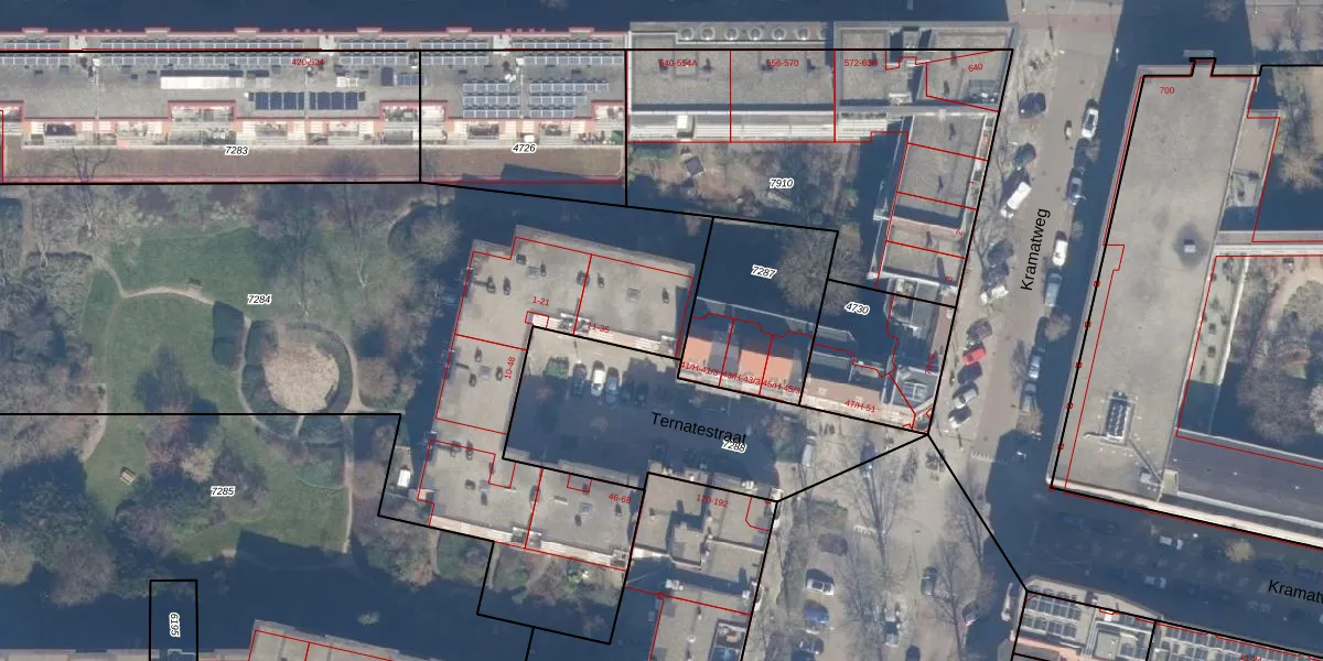 Het perceel waarop Ternatestraat 33 staat heeft een oppervlakte van 4978 m². Dit is een zeer groot perceel. De perceeloppervlakte wordt geregistreerd door het Kadaster. Gedetailleerde informatie over de maten van dit perceel kunt u vinden in het rapport Kadastrale kaart met maatvoering van Ternatestraat 33.