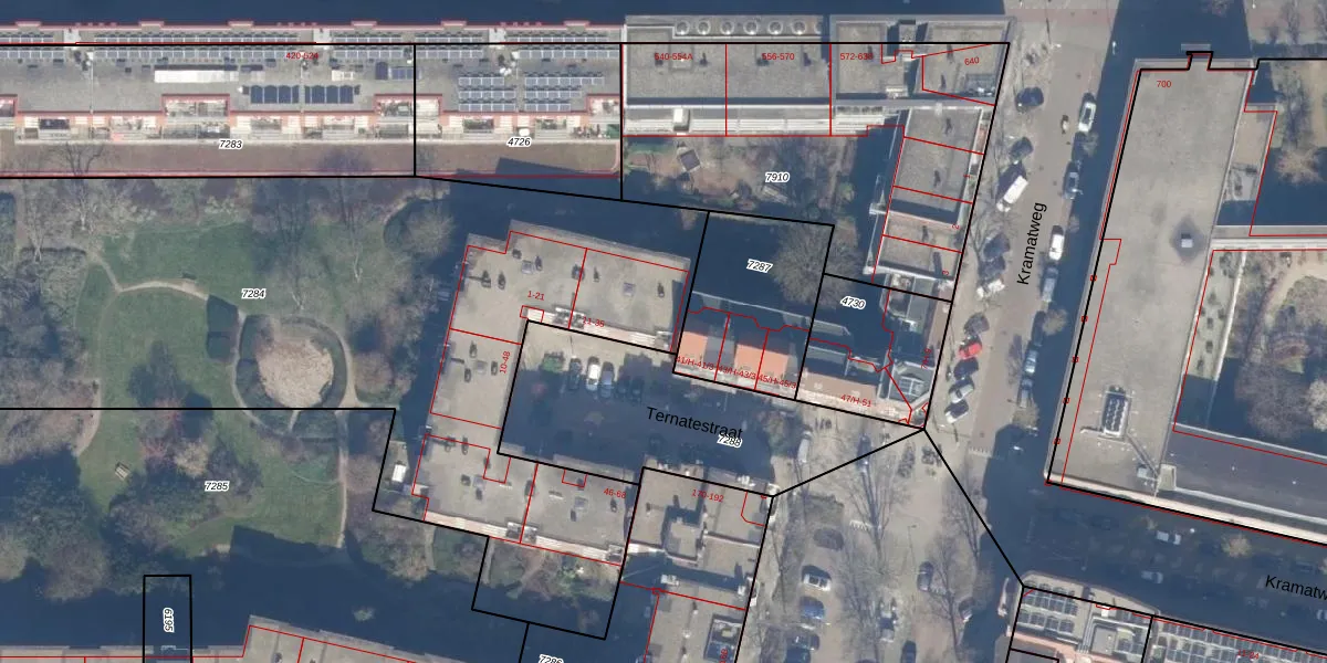 Het perceel waarop Ternatestraat 35 staat heeft een oppervlakte van 4978 m². Dit is een zeer groot perceel. De perceeloppervlakte wordt geregistreerd door het Kadaster. Gedetailleerde informatie over de maten van dit perceel kunt u vinden in het rapport Kadastrale kaart met maatvoering van Ternatestraat 35.