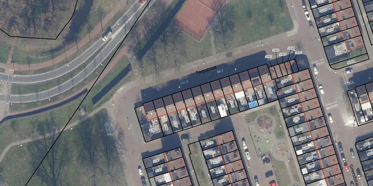 Gebruik de zoekbalk of klik op een perceel voor informatie over de adressen binnen dit perceel.