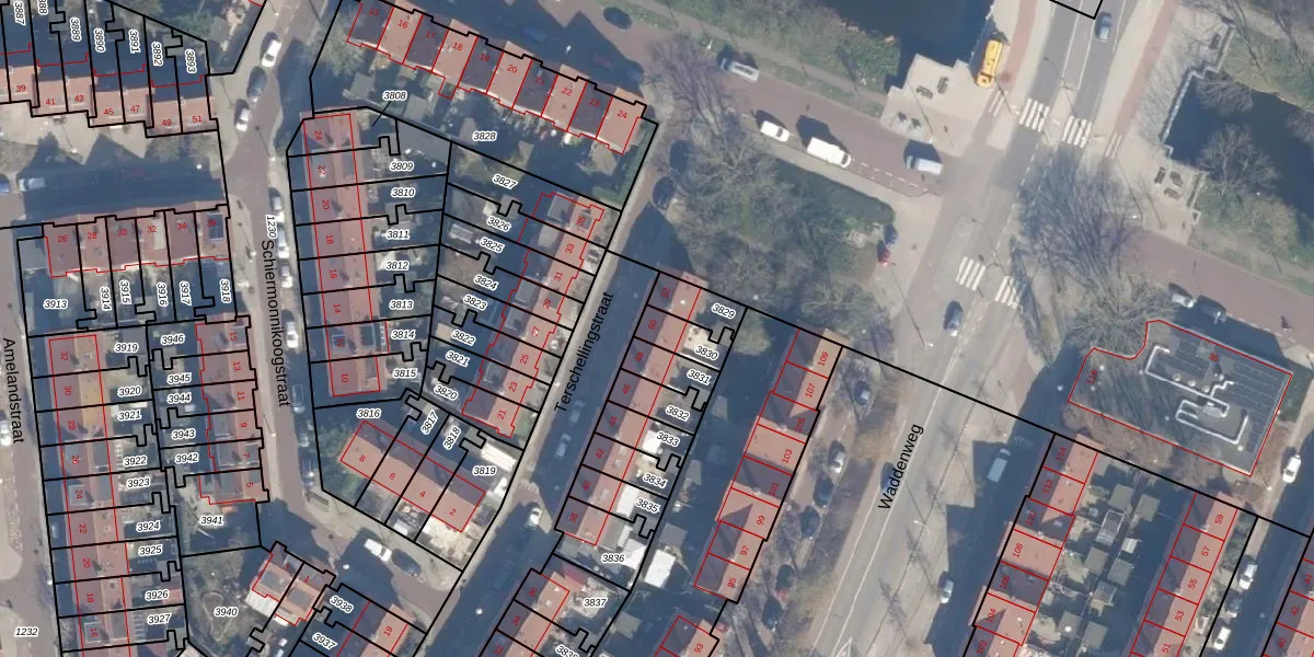 Gebruik de zoekbalk of klik op een perceel voor informatie over de adressen binnen dit perceel.