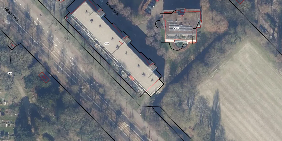 Teslastraat 100 is gelegen op kadastraal perceel WTG02B4158. Deze kadastrale aanduiding is uniek en wordt gebruikt door het Kadaster om eigendomsrechten en andere zakelijke rechten vast te leggen. Het perceel maakt onderdeel uit van de kadastrale gemeente Watergraafsmeer.