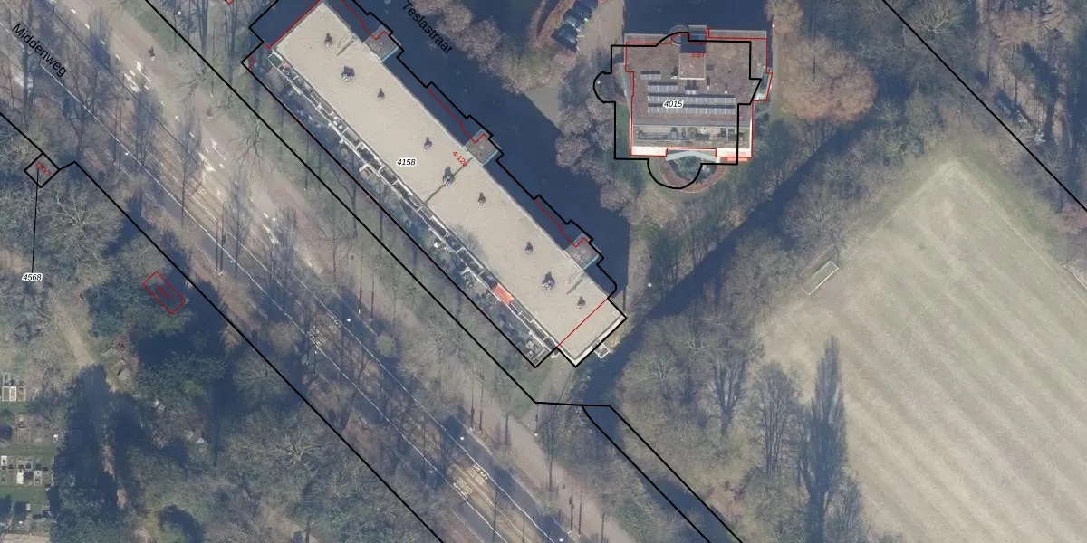 Teslastraat 104 is gelegen op kadastraal perceel WTG02B4158. Deze kadastrale aanduiding is uniek en wordt gebruikt door het Kadaster om eigendomsrechten en andere zakelijke rechten vast te leggen. Het perceel maakt onderdeel uit van de kadastrale gemeente Watergraafsmeer.