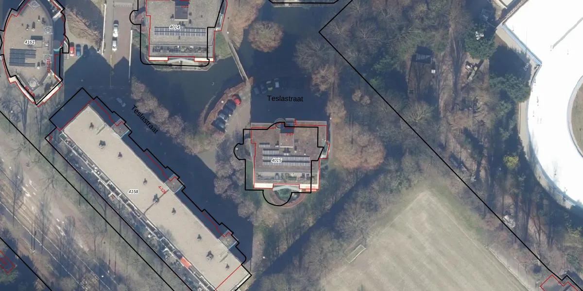Het perceel waarop Teslastraat 25 staat heeft een oppervlakte van 590 m². Dit is een groot perceel. De perceeloppervlakte wordt geregistreerd door het Kadaster. Gedetailleerde informatie over de maten van dit perceel kunt u vinden in het rapport Kadastrale kaart met maatvoering van Teslastraat 25.