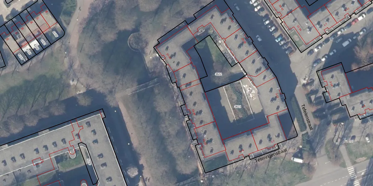 Teteringenstraat 30 is gelegen op kadastraal perceel WPK02L3621. Deze kadastrale aanduiding is uniek en wordt gebruikt door het Kadaster om eigendomsrechten en andere zakelijke rechten vast te leggen. Het perceel maakt onderdeel uit van de kadastrale gemeente Weesperkarspel.