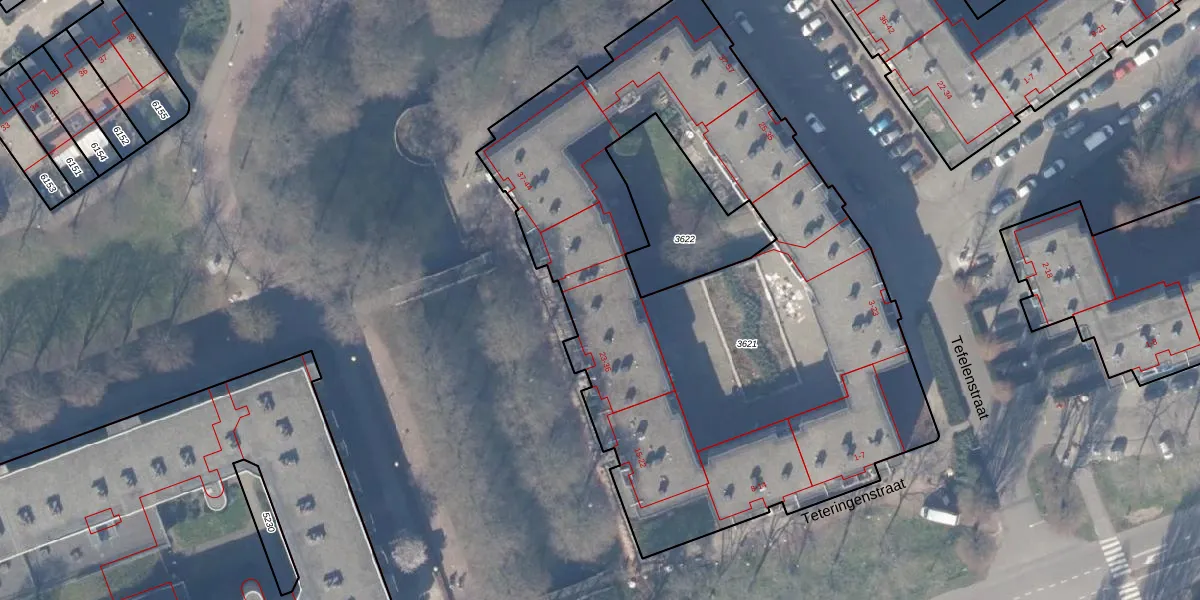 Het perceel waarop Teteringenstraat 31 staat heeft een oppervlakte van 3635 m². Dit is een zeer groot perceel. De perceeloppervlakte wordt geregistreerd door het Kadaster. Gedetailleerde informatie over de maten van dit perceel kunt u vinden in het rapport Kadastrale kaart met maatvoering van Teteringenstraat 31.