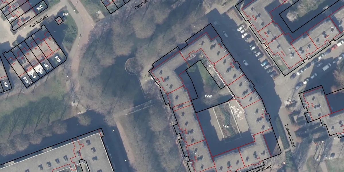 Het perceel waarop Teteringenstraat 38 staat heeft een oppervlakte van 3635 m². Dit is een zeer groot perceel. De perceeloppervlakte wordt geregistreerd door het Kadaster. Gedetailleerde informatie over de maten van dit perceel kunt u vinden in het rapport Kadastrale kaart met maatvoering van Teteringenstraat 38.