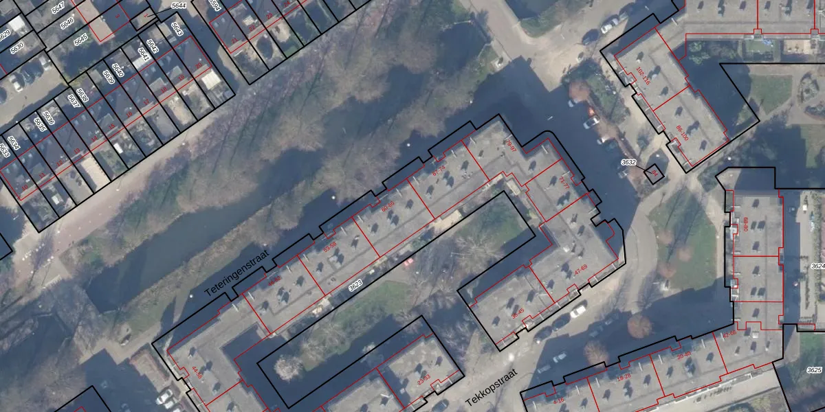 Het perceel waarop Teteringenstraat 65 staat heeft een oppervlakte van 4080 m². Dit is een zeer groot perceel. De perceeloppervlakte wordt geregistreerd door het Kadaster. Gedetailleerde informatie over de maten van dit perceel kunt u vinden in het rapport Kadastrale kaart met maatvoering van Teteringenstraat 65.