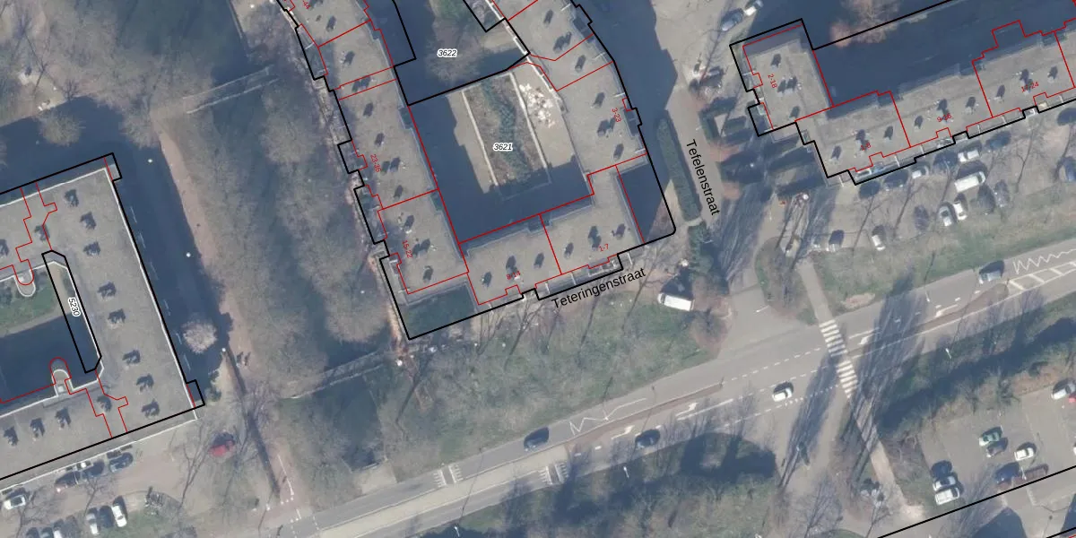 Teteringenstraat 8 is gelegen op kadastraal perceel WPK02L3621. Deze kadastrale aanduiding is uniek en wordt gebruikt door het Kadaster om eigendomsrechten en andere zakelijke rechten vast te leggen. Het perceel maakt onderdeel uit van de kadastrale gemeente Weesperkarspel.