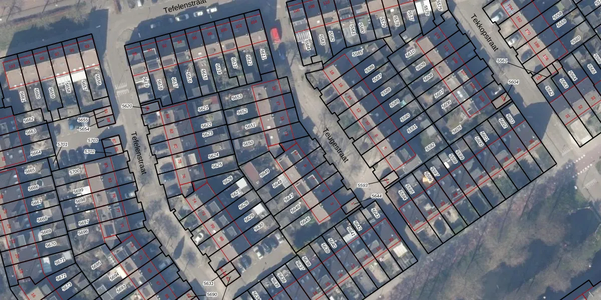 Het perceel waarop Teugestraat 11 staat heeft een oppervlakte van 197 m². Dit is een middelgroot perceel. De perceeloppervlakte wordt geregistreerd door het Kadaster. Gedetailleerde informatie over de maten van dit perceel kunt u vinden in het rapport Kadastrale kaart met maatvoering van Teugestraat 11.