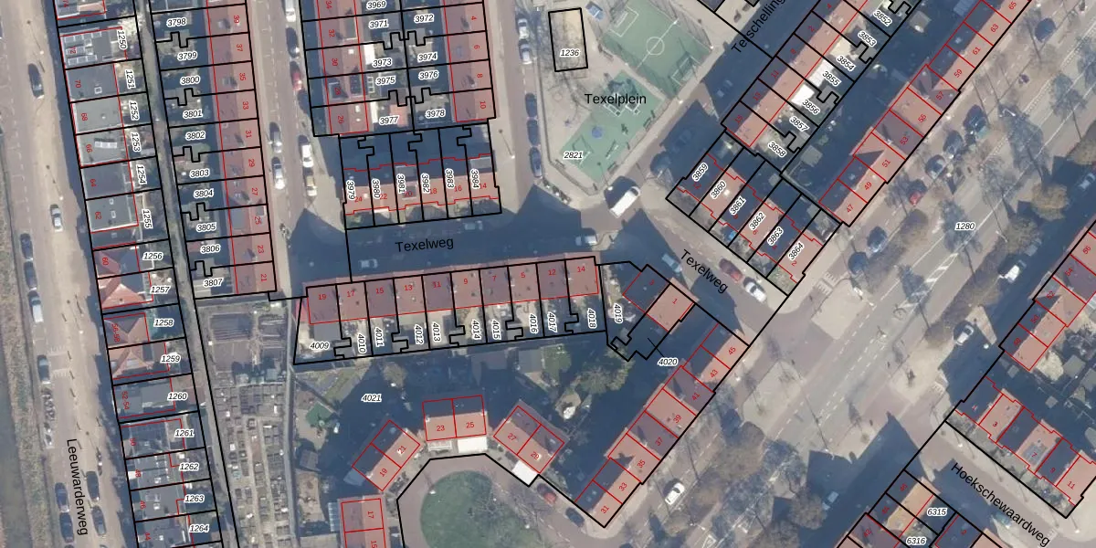 Het perceel waarop Texelplein 12 staat heeft een oppervlakte van 78 m². Dit is een klein perceel. De perceeloppervlakte wordt geregistreerd door het Kadaster. Gedetailleerde informatie over de maten van dit perceel kunt u vinden in het rapport Kadastrale kaart met maatvoering van Texelplein 12.