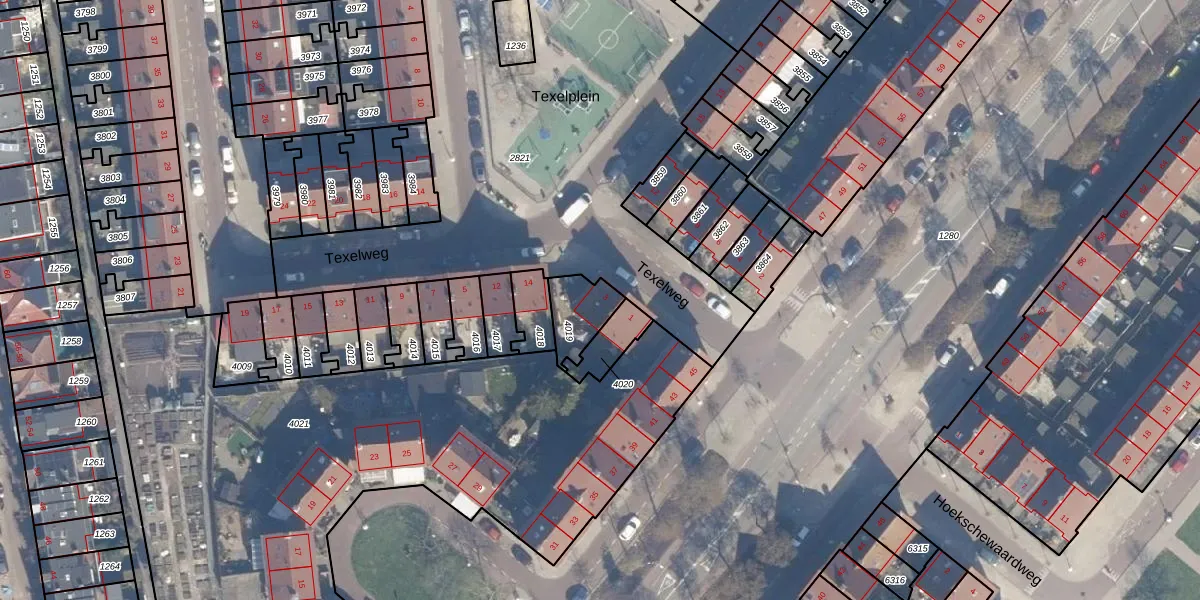 Gebruik de zoekbalk of klik op een perceel voor informatie over de adressen binnen dit perceel.