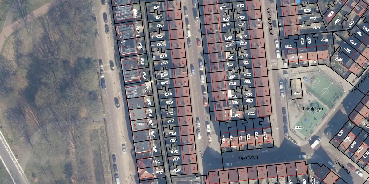 Gebruik de zoekbalk of klik op een perceel voor informatie over de adressen binnen dit perceel.