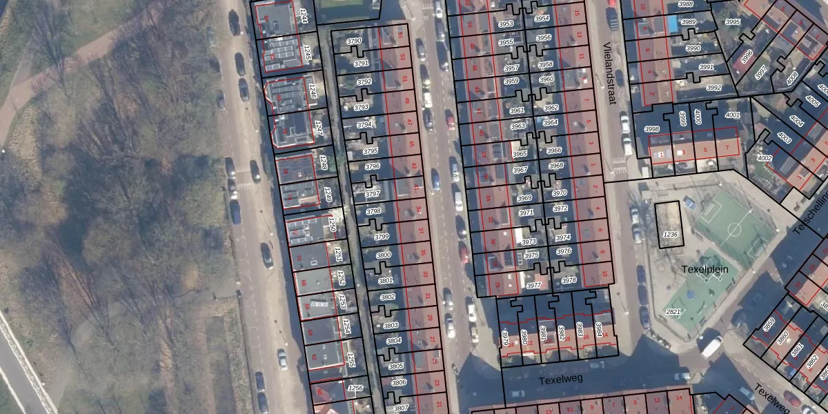 Het perceel waarop Texelweg 39 staat heeft een oppervlakte van 90 m². Dit is een klein perceel. De perceeloppervlakte wordt geregistreerd door het Kadaster. Gedetailleerde informatie over de maten van dit perceel kunt u vinden in het rapport Kadastrale kaart met maatvoering van Texelweg 39.