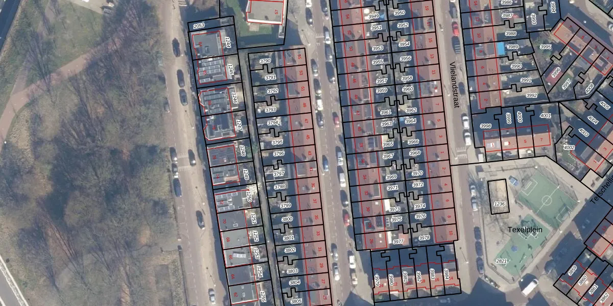 Gebruik de zoekbalk of klik op een perceel voor informatie over de adressen binnen dit perceel.