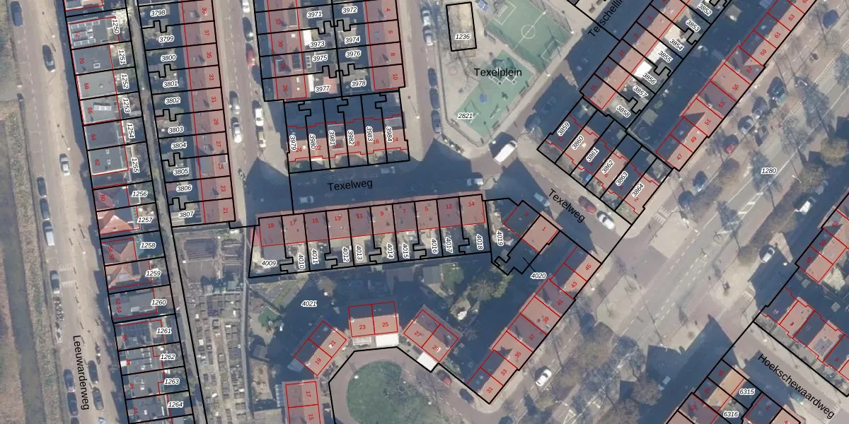 Gebruik de zoekbalk of klik op een perceel voor informatie over de adressen binnen dit perceel.