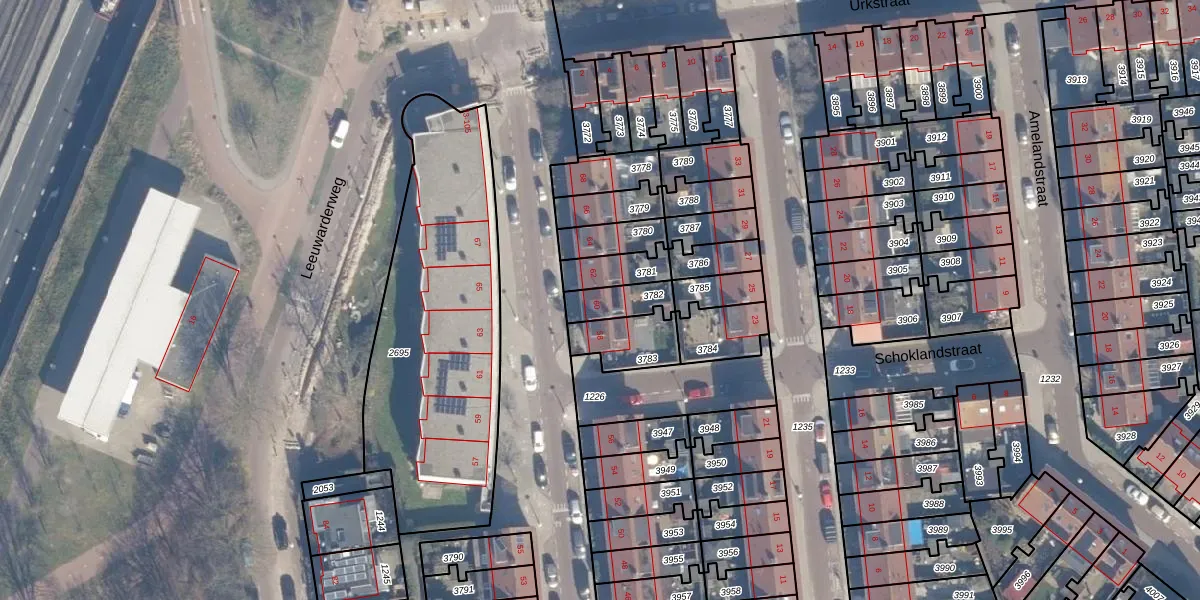 Gebruik de zoekbalk of klik op een perceel voor informatie over de adressen binnen dit perceel.