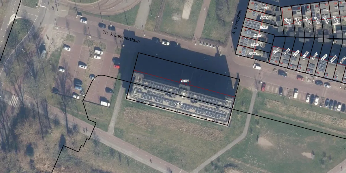 Het perceel waarop Th. J. Lammerslaan 13 staat heeft een oppervlakte van 1075 m². Dit is een zeer groot perceel. De perceeloppervlakte wordt geregistreerd door het Kadaster. Gedetailleerde informatie over de maten van dit perceel kunt u vinden in het rapport Kadastrale kaart met maatvoering van Th. J. Lammerslaan 13.