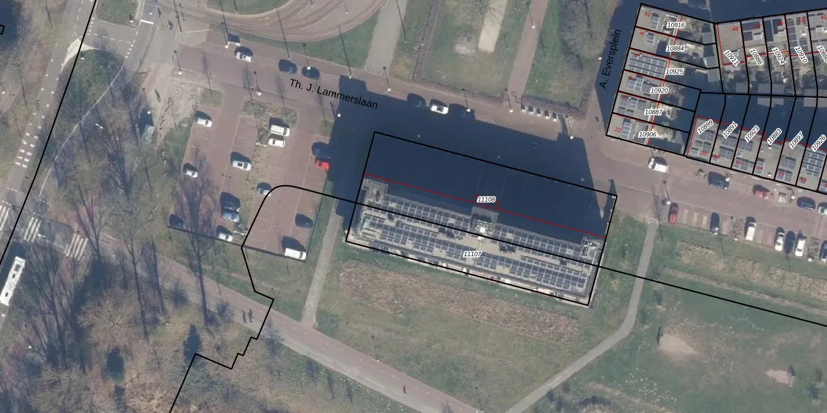 Het perceel waarop Th. J. Lammerslaan 39 staat heeft een oppervlakte van 1075 m². Dit is een zeer groot perceel. De perceeloppervlakte wordt geregistreerd door het Kadaster. Gedetailleerde informatie over de maten van dit perceel kunt u vinden in het rapport Kadastrale kaart met maatvoering van Th. J. Lammerslaan 39.