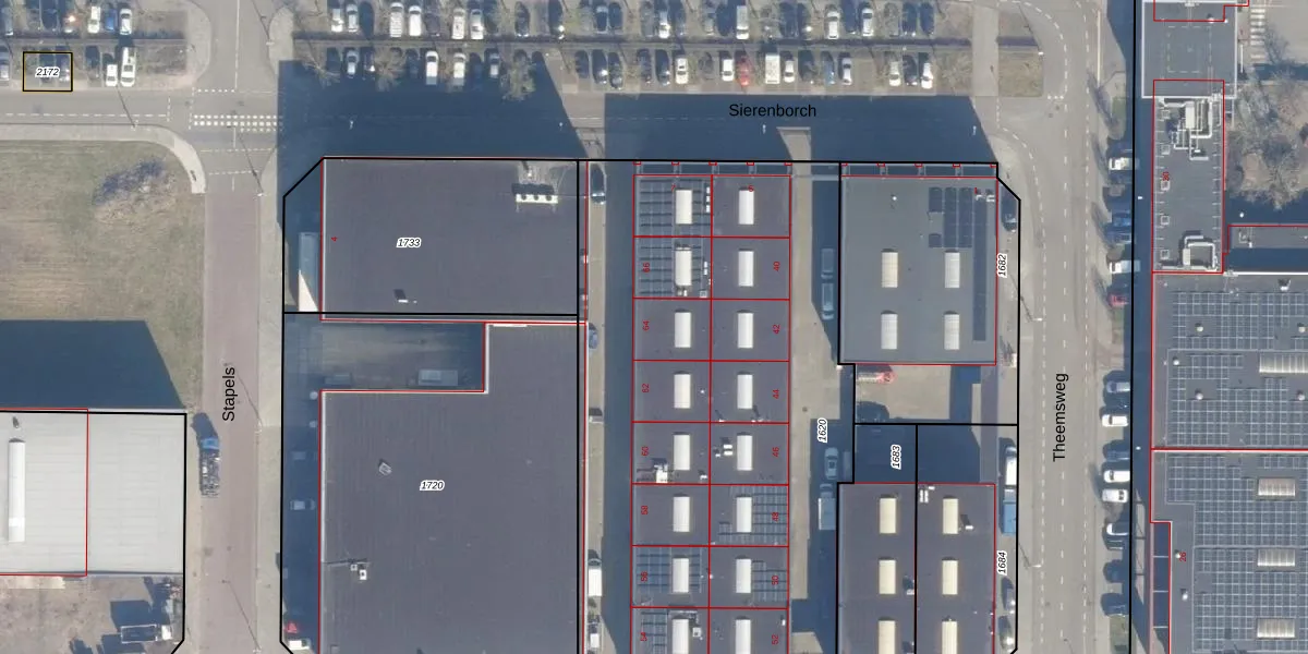 Het perceel waarop Theemsweg 64 staat heeft een oppervlakte van 3226 m². Dit is een zeer groot perceel. De perceeloppervlakte wordt geregistreerd door het Kadaster. Gedetailleerde informatie over de maten van dit perceel kunt u vinden in het rapport Kadastrale kaart met maatvoering van Theemsweg 64.