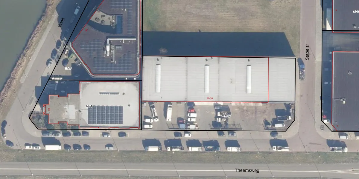 Het perceel waarop Theemsweg 76 staat heeft een oppervlakte van 3495 m². Dit is een zeer groot perceel. De perceeloppervlakte wordt geregistreerd door het Kadaster. Gedetailleerde informatie over de maten van dit perceel kunt u vinden in het rapport Kadastrale kaart met maatvoering van Theemsweg 76.