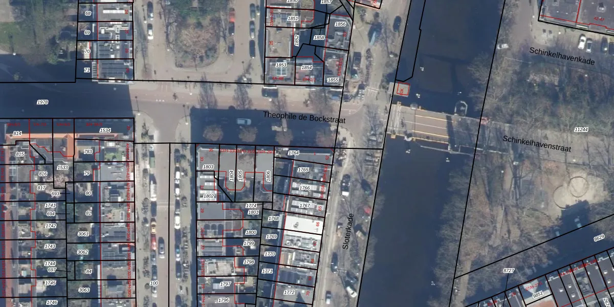 Theophile de Bockstraat 1 is gelegen op kadastraal perceel STN02O1764. Deze kadastrale aanduiding is uniek en wordt gebruikt door het Kadaster om eigendomsrechten en andere zakelijke rechten vast te leggen. Het perceel maakt onderdeel uit van de kadastrale gemeente Sloten Noord-Holland.