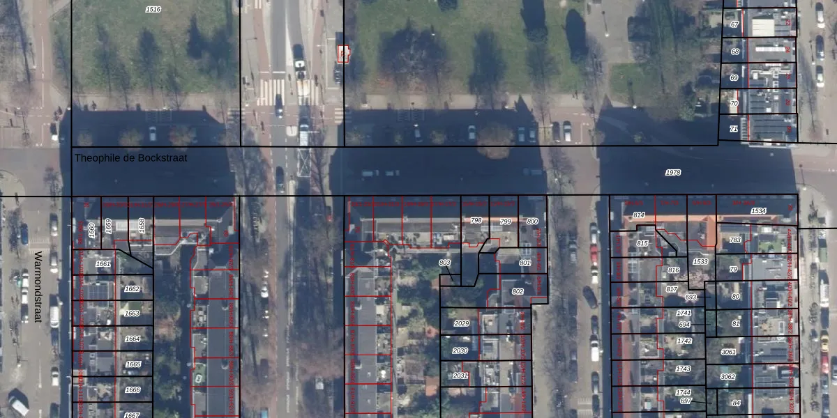 Het perceel waarop Theophile de Bockstraat 19-3 staat heeft een oppervlakte van 3384 m². Dit is een zeer groot perceel. De perceeloppervlakte wordt geregistreerd door het Kadaster. Gedetailleerde informatie over de maten van dit perceel kunt u vinden in het rapport Kadastrale kaart met maatvoering van Theophile de Bockstraat 19-3.
