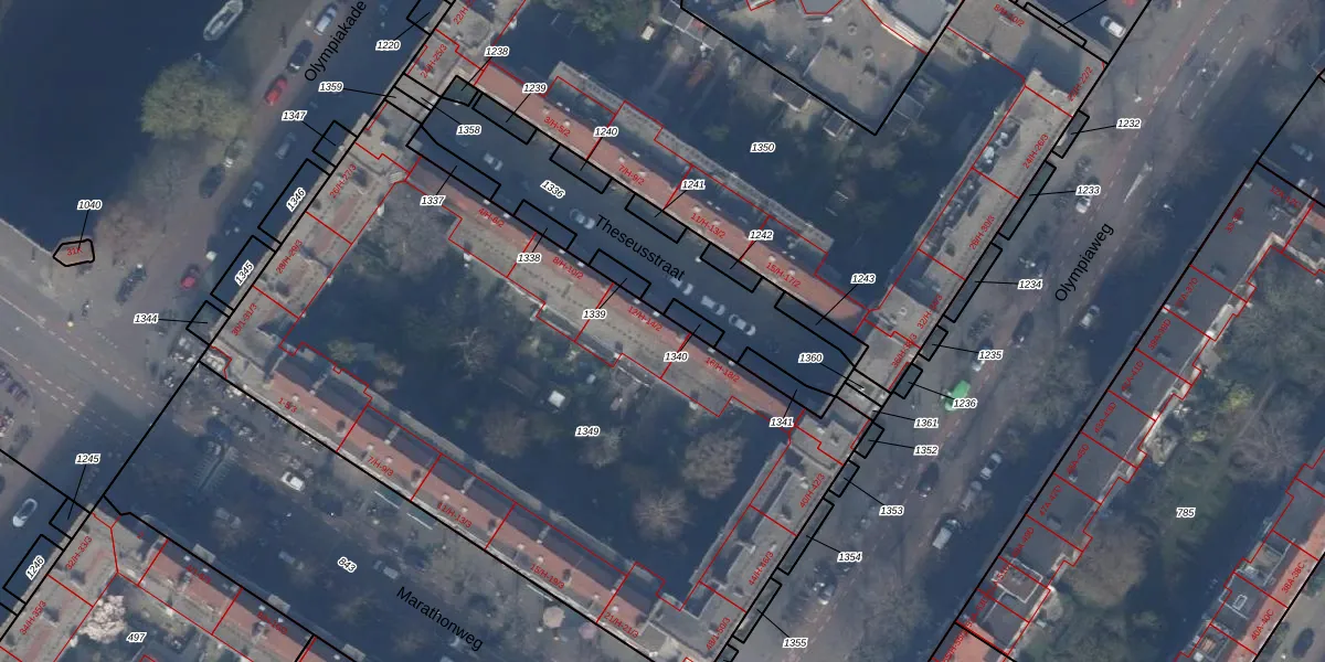 Theseusstraat 14-2 is gelegen op kadastraal perceel ASD24AC1349. Deze kadastrale aanduiding is uniek en wordt gebruikt door het Kadaster om eigendomsrechten en andere zakelijke rechten vast te leggen. Het perceel maakt onderdeel uit van de kadastrale gemeente Amsterdam.