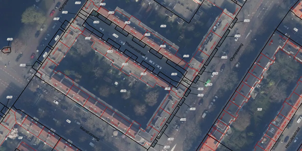 Theseusstraat 16-H is gelegen op kadastraal perceel ASD24AC1349. Deze kadastrale aanduiding is uniek en wordt gebruikt door het Kadaster om eigendomsrechten en andere zakelijke rechten vast te leggen. Het perceel maakt onderdeel uit van de kadastrale gemeente Amsterdam.