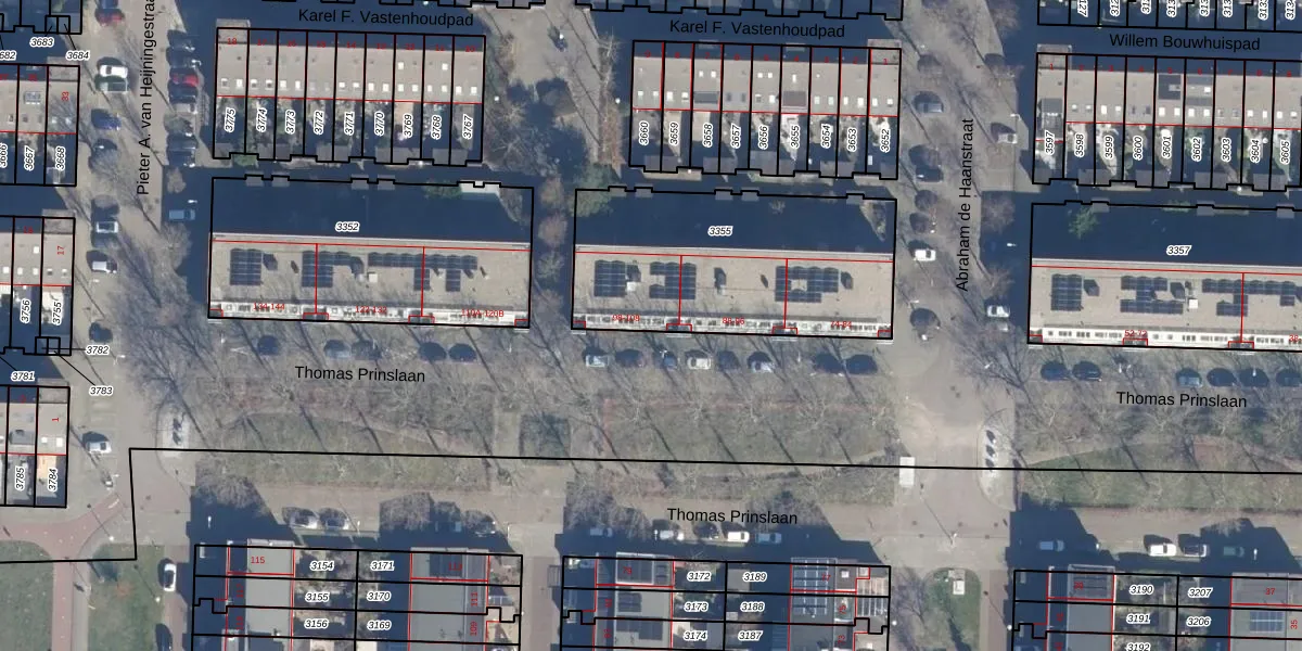 Het perceel waarop Thomas Prinslaan 102 staat heeft een oppervlakte van 1060 m². Dit is een zeer groot perceel. De perceeloppervlakte wordt geregistreerd door het Kadaster. Gedetailleerde informatie over de maten van dit perceel kunt u vinden in het rapport Kadastrale kaart met maatvoering van Thomas Prinslaan 102.