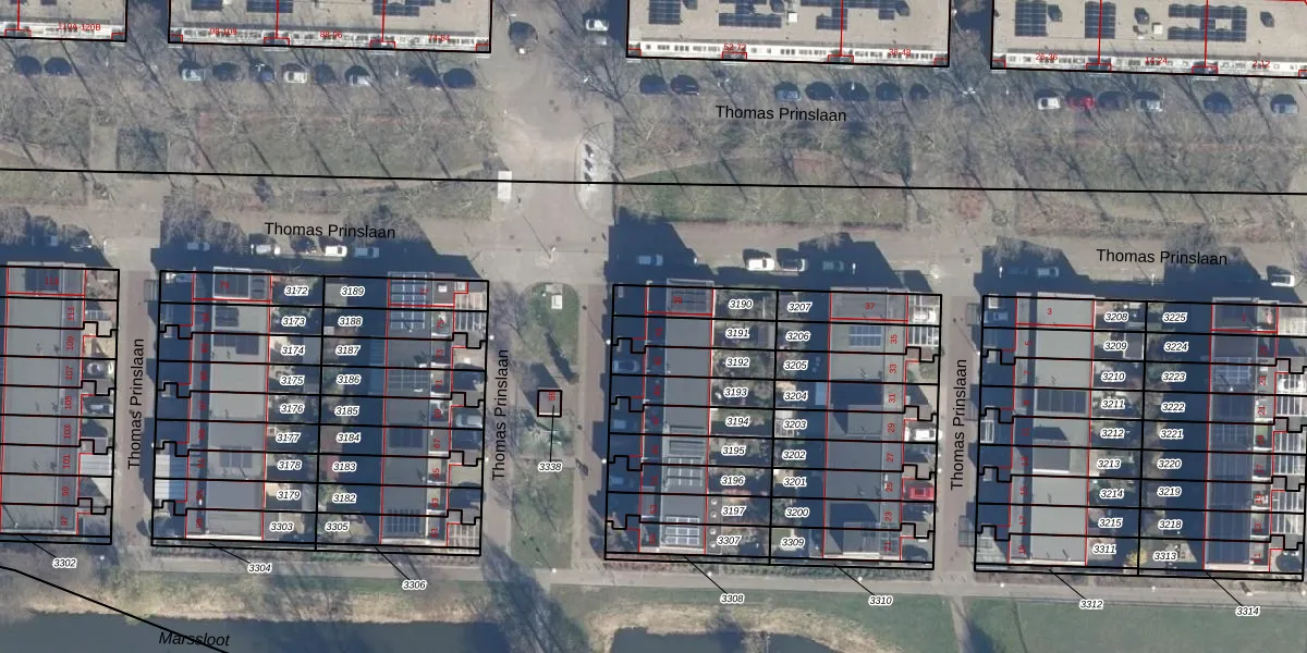 Gebruik de zoekbalk of klik op een perceel voor informatie over de adressen binnen dit perceel.