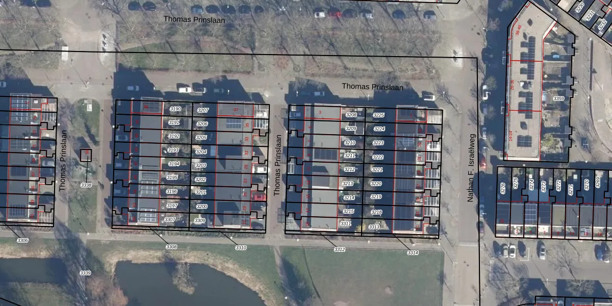 Gebruik de zoekbalk of klik op een perceel voor informatie over de adressen binnen dit perceel.