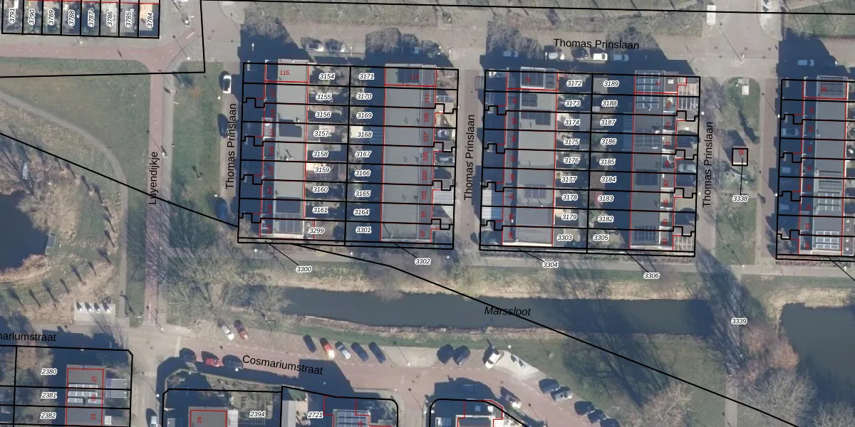 Gebruik de zoekbalk of klik op een perceel voor informatie over de adressen binnen dit perceel.