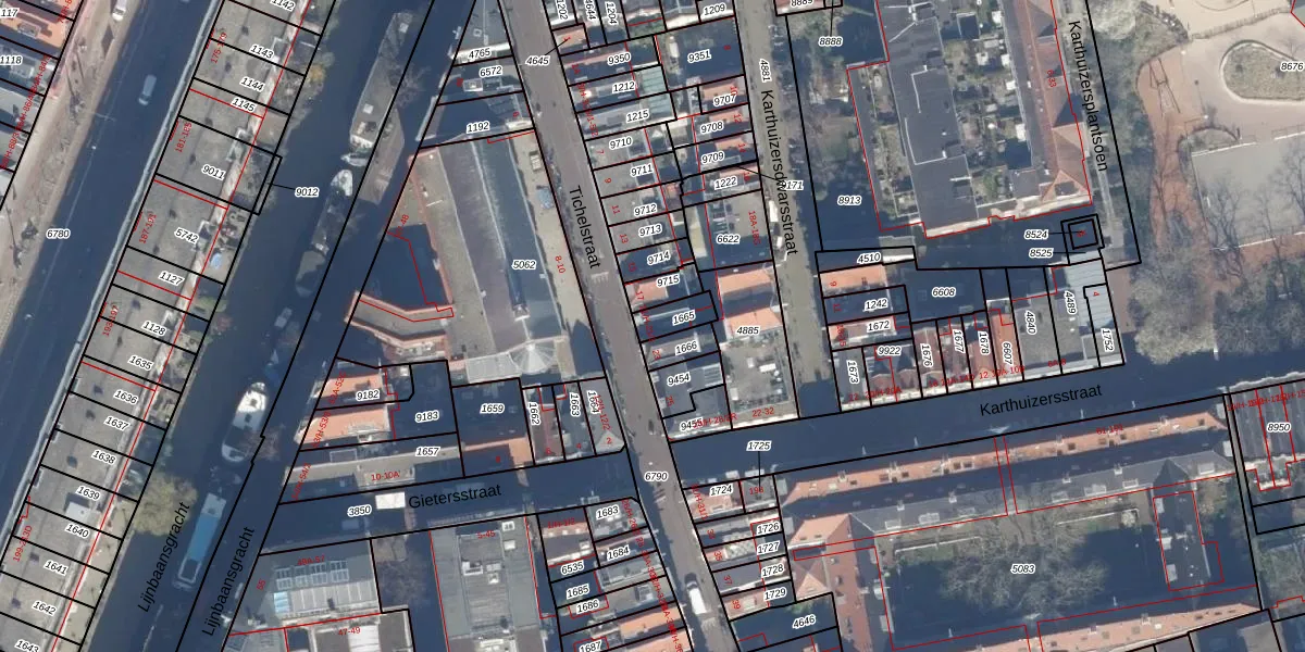 Het perceel waarop het adres ligt is ASD08-L-1665. De afkorting 'ASD08' staat voor kadastrale gemeente Amsterdam. Het perceel is kleiner dan gemiddeld in Amsterdam. Het perceel is 56 m² groot, terwijl het gemiddelde ligt op 202,23 m². Het grootste perceel in de kadastrale gemeente is 3,3 ha. Het kleinste perceel heeft een oppervlakte van 0 m². Op het perceel liggen in totaal 2 adressen. De huidige grenzen van het perceel zijn digitaal in de Basisregistratie Kadaster (BRK) geregistreerd op 26-01-2007.