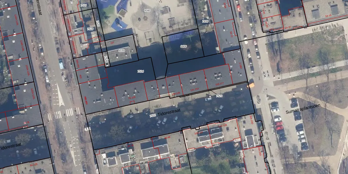 Tidorestraat 115 is gelegen op kadastraal perceel ASD19W7524. Deze kadastrale aanduiding is uniek en wordt gebruikt door het Kadaster om eigendomsrechten en andere zakelijke rechten vast te leggen. Het perceel maakt onderdeel uit van de kadastrale gemeente Amsterdam.
