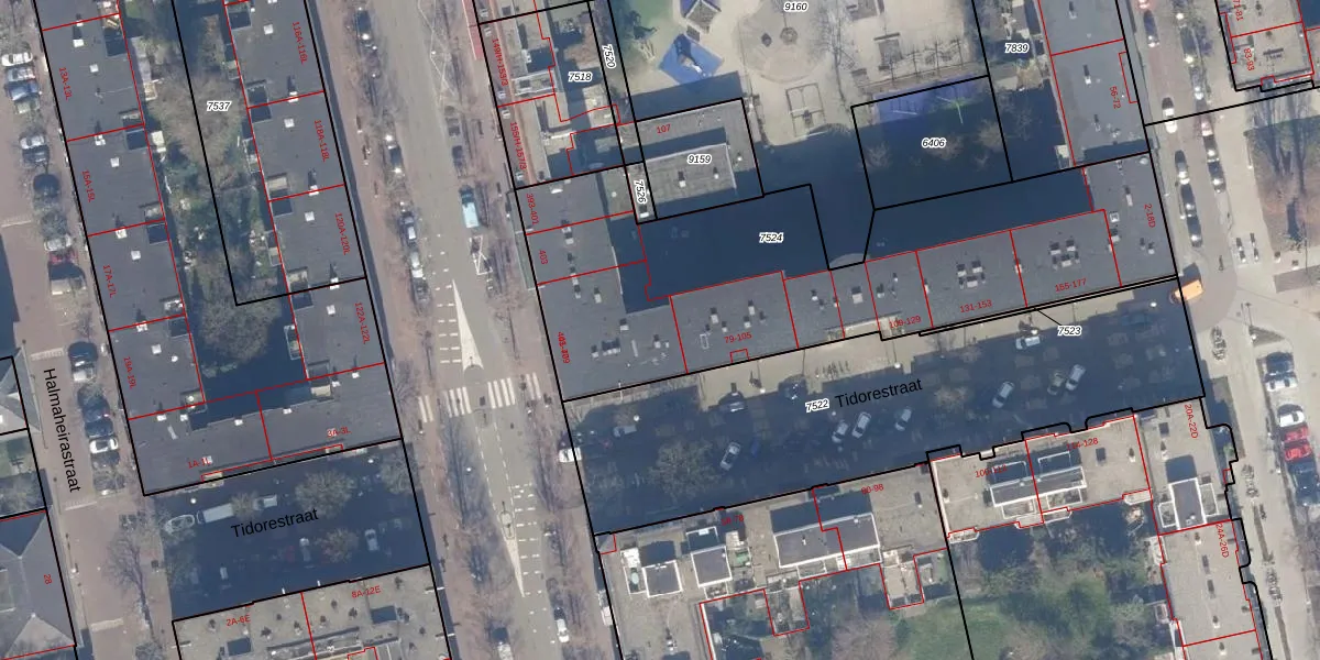 Het perceel waarop Tidorestraat 67 staat heeft een oppervlakte van 2118 m². Dit is een zeer groot perceel. De perceeloppervlakte wordt geregistreerd door het Kadaster. Gedetailleerde informatie over de maten van dit perceel kunt u vinden in het rapport Kadastrale kaart met maatvoering van Tidorestraat 67.